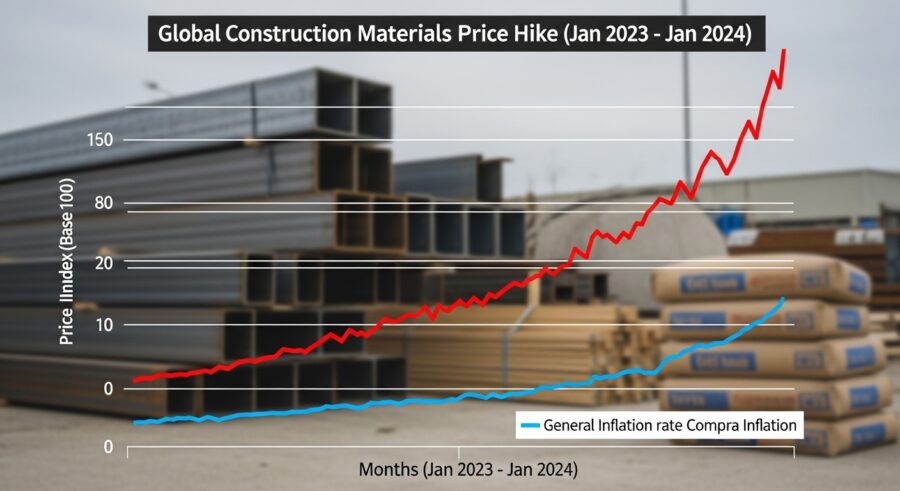 ロシア・ウクライナ情勢によるエネルギー価格の高騰は、鉄骨、コンクリート、樹脂製品などの主要な建築資材の製造・輸送コストを押し上げています。